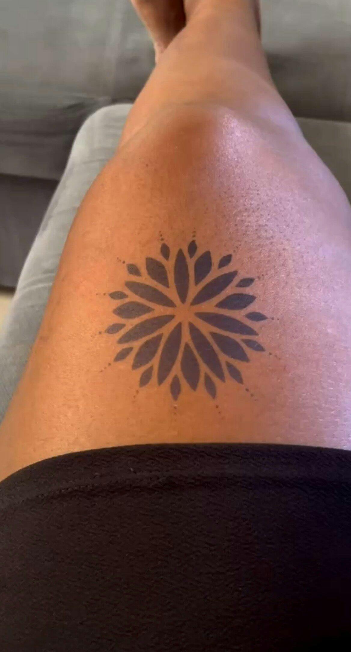 The floral rosette temporary tattoo highlights the timeless beauty of a delicate and floral rosette. This detailed pattern represents the elegance and delicacy of flowers in the form of a mandala. Wear this temporary tattoo to add a touch of femininity, grace and sophistication to your style. Let this floral rosette remind you of the beauty of nature and the richness of floral geometric patterns.