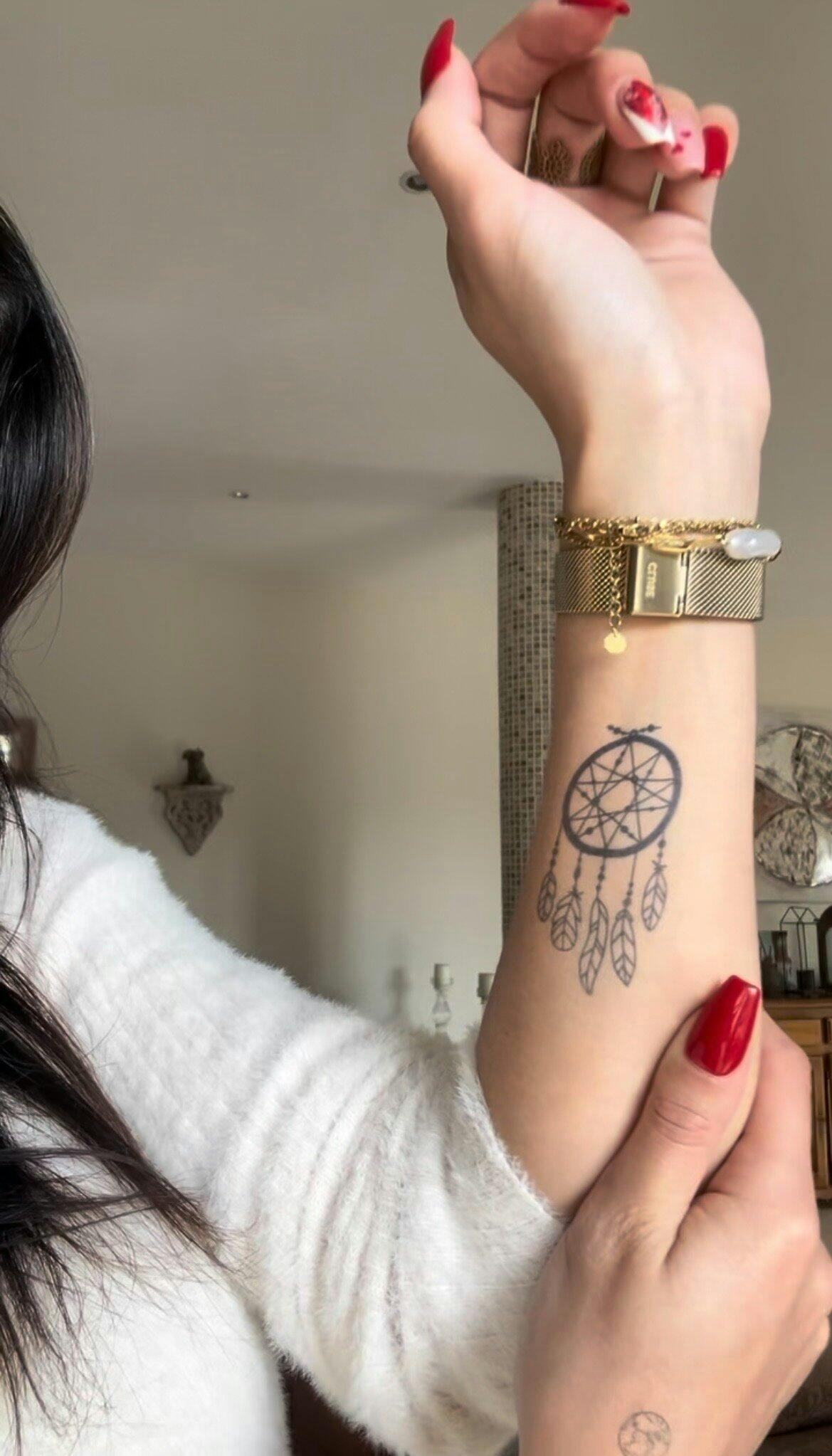 • Tatouage attrape rêve avec plume réaliste et spirituel pour femme
