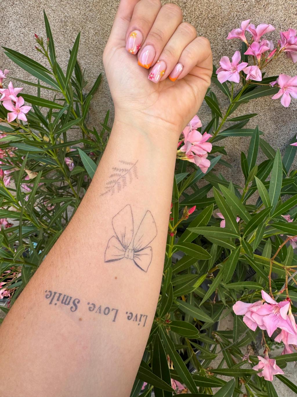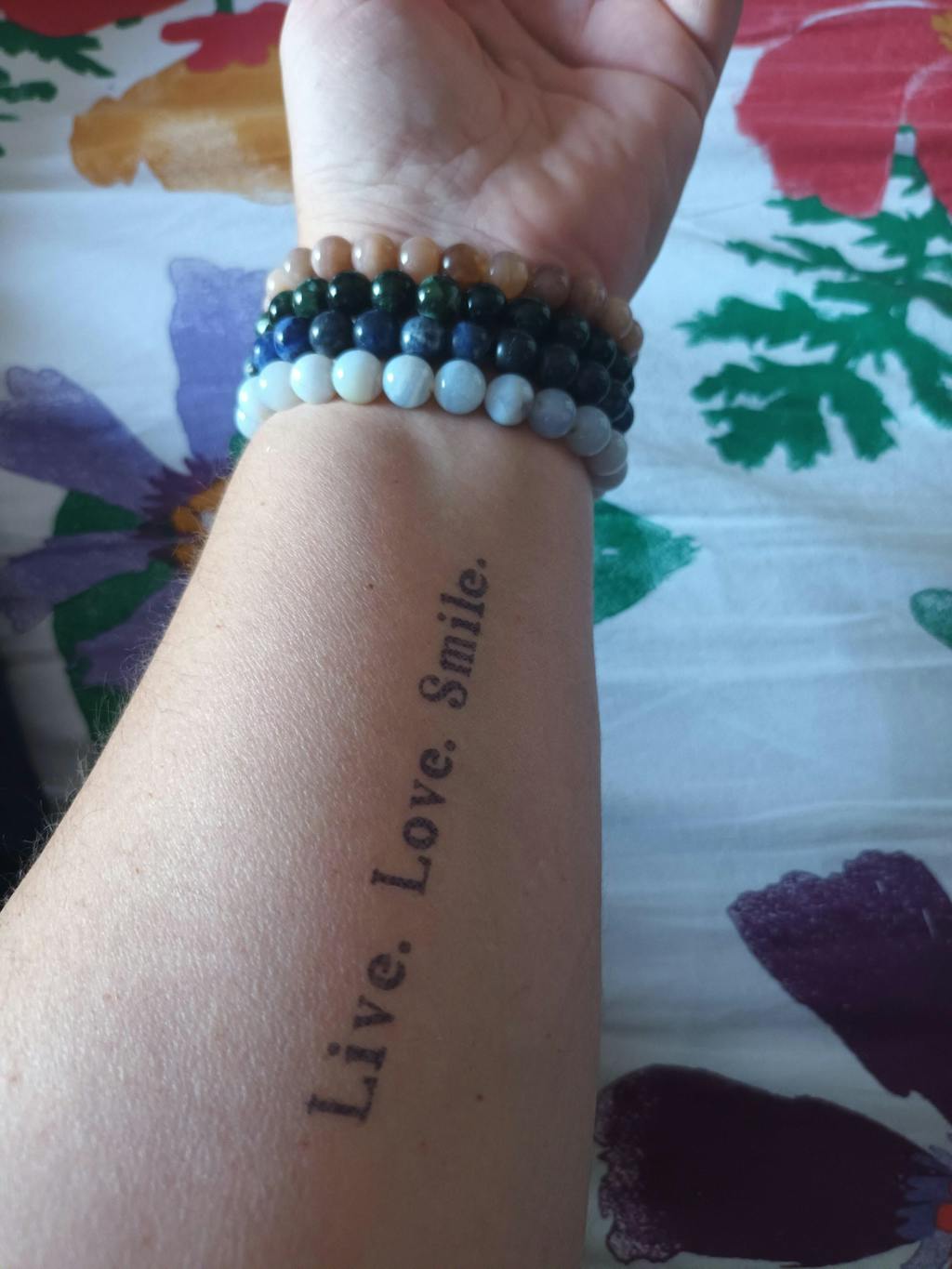 Notre tatouage éphémère, Live Love Smile, célèbre la vie, l'amour et le bonheur. Avec la citation "Live, Love, Smile", ce tatouage est un rappel constant de l'importance de vivre pleinement, d'aimer profondément et de sourire joyeusement. Il incarne l'esprit positif, la joie de vivre et la gratitude envers les belles choses de la vie. Que ce soit comme un mantra personnel ou comme un message inspirant à partager, ce tatouage est un symbole puissant de la positivité et de la bienveillance.